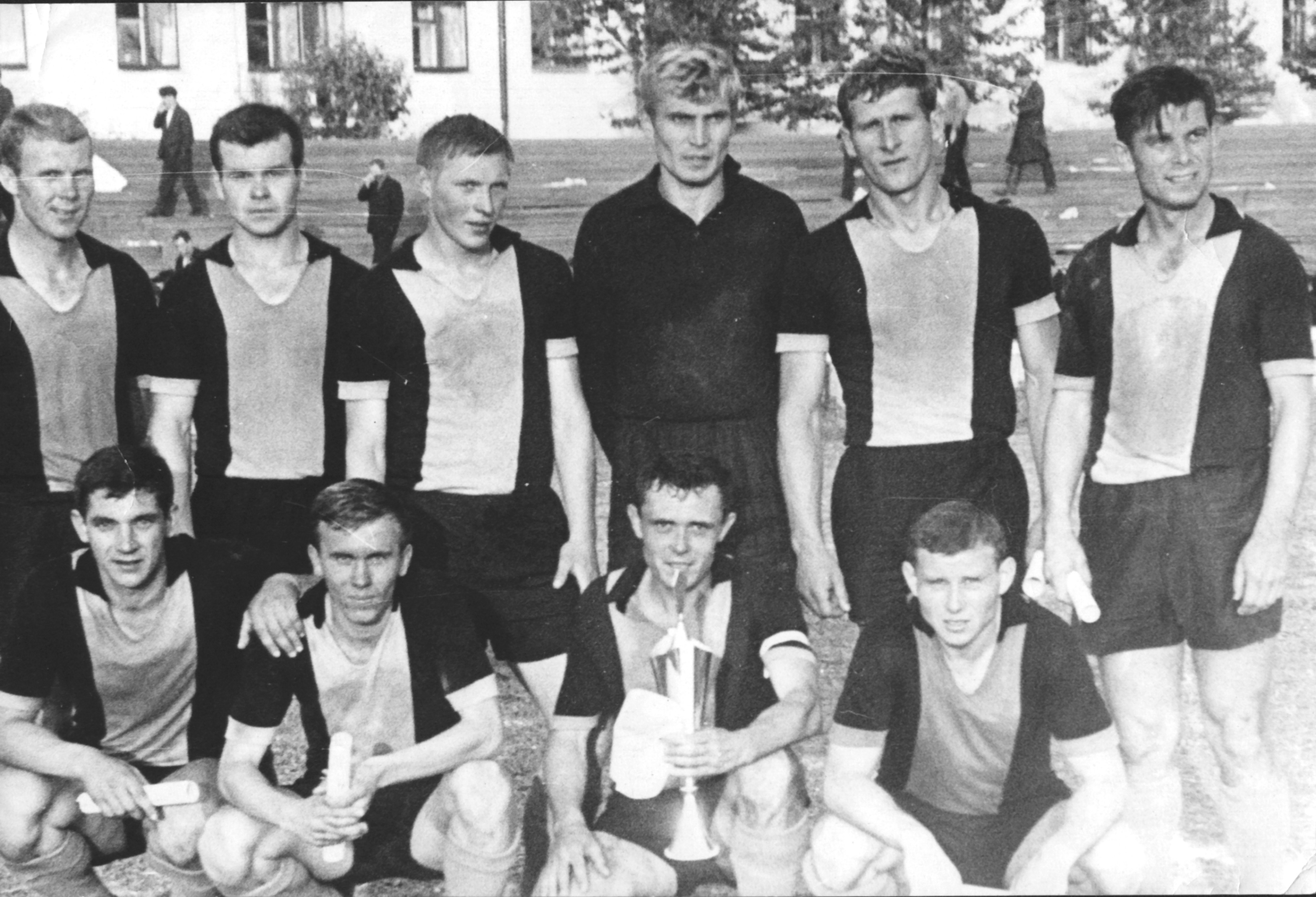 В первом ряду сидят (слева направо): Геннадий Швец, Владимир Андрейченко, Геннадий Багаев (с кубком), Виктор Романюта.