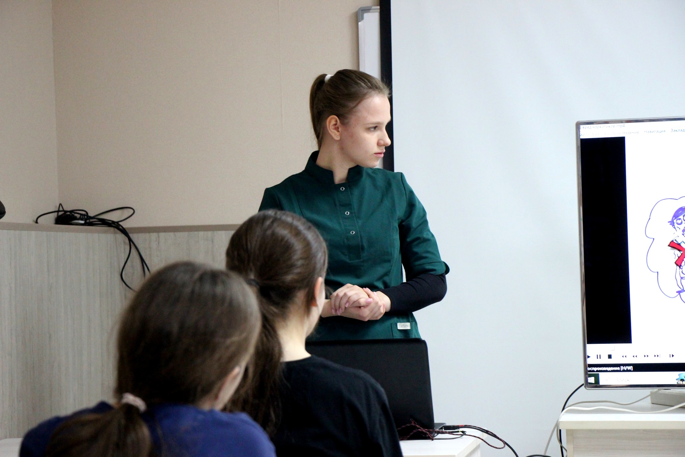 В этот раз медицинская сестра спортучреждения Мария Додонова организовала серию антинаркотических лекций для возрастной группы U16 (2011-2012 г.р.). Она показала юным волейболистам фильм и рассказала, почему важно отказываться от вредных привычек и придерживаться здорового образа жизни.