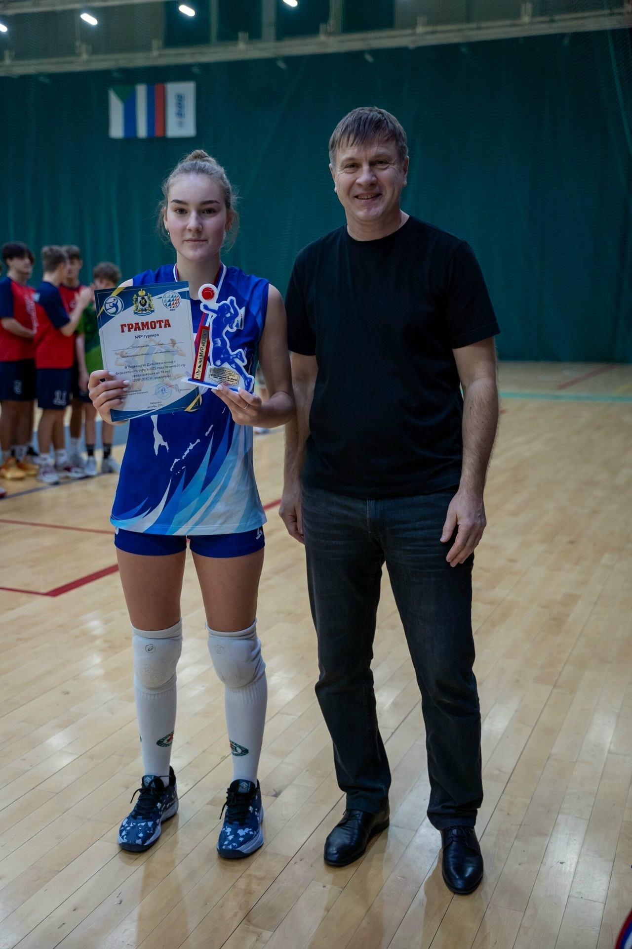 Победительницами первенства ДФО стали Софья Баева, Таисия Гордеева, Таисия Дробышева, Мария Ермакова, Дарья Ивлева, Яна Максутова, Ипек Расулзаде, Полина Рощина, Ева Старостина, Эржена Цыденова, Екатерина Шарая и тренер Марина Борисовна Захарова.