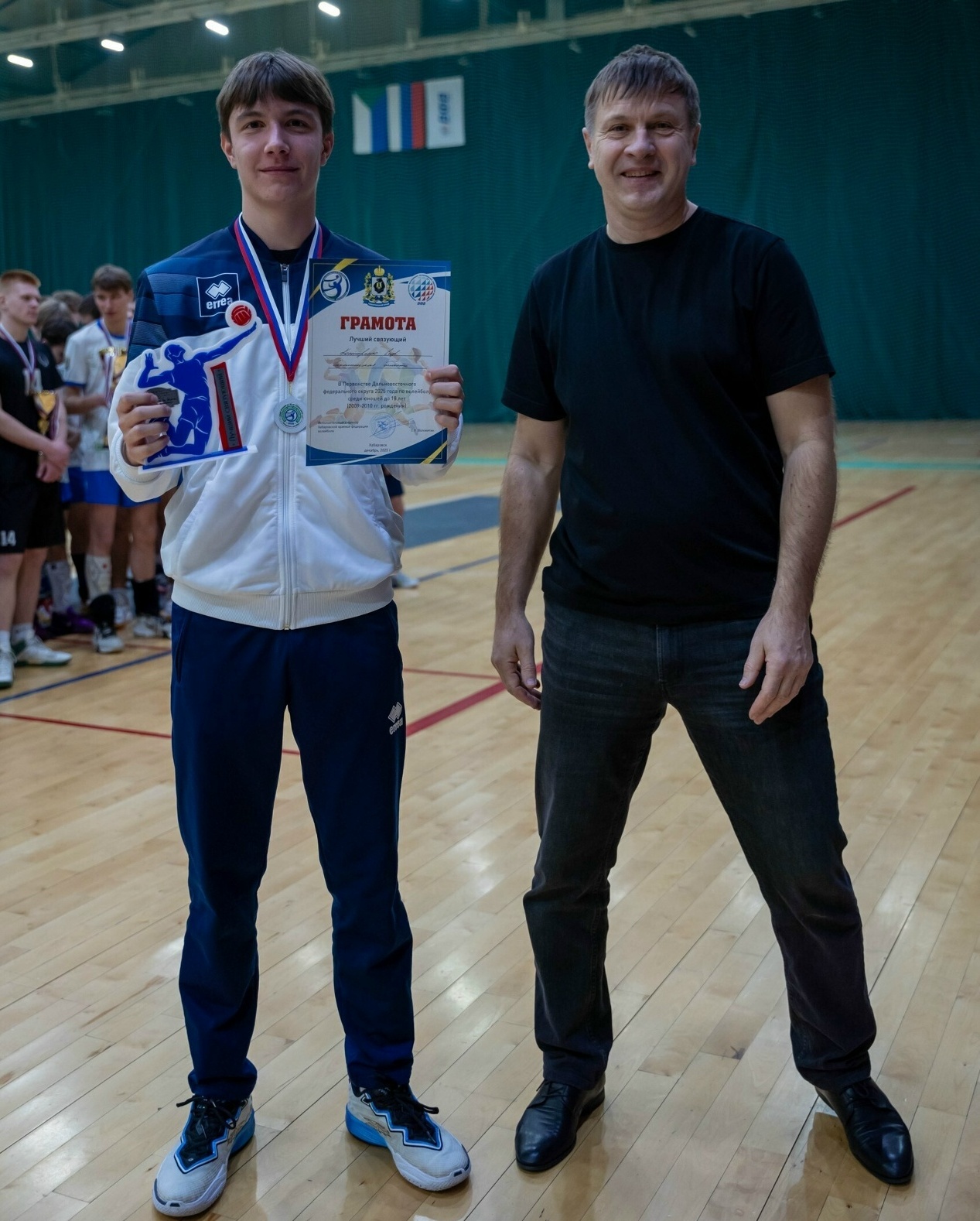 Семь команд юношей играли по круговой системе. Четыре победы в шести матчах принесли серебряные награды островным волейболистам. Их обладателями стали Константин Ахмедов, Данила Бережков, Кирилл Винник, Роман Карцев, Станислав Корчигин, Егор Костыренко, Роман Лях, Глеб Петрушкин, Даниил Погодин, Вадим Чанчиков, Максим Шарый, Герман Яхин и тренер Олег Витальевич Крюков.