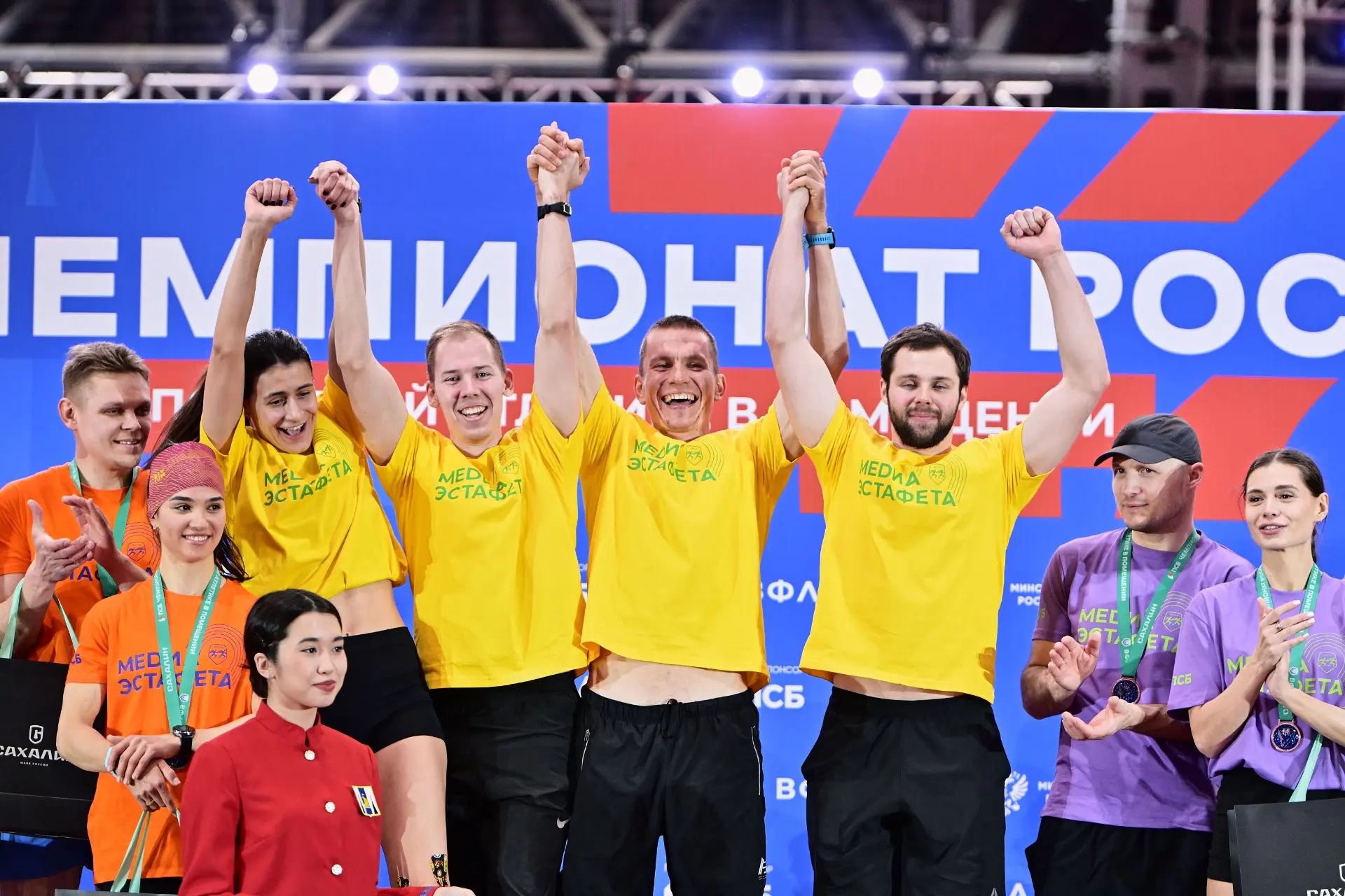 Победу праздновала команда «желтых» в составе трехкратного олимпийского чемпиона по лыжным гонкам Александра Большунова, участника Олимпийских игр в горнолыжном спорте Ивана Кузнецова, легкоатлетки Софии Мирошниченко и журналиста Ильи Латыпова.
