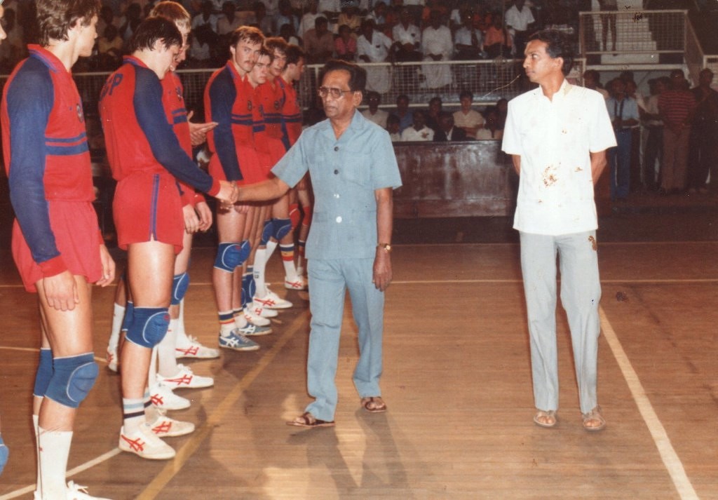 1984 год. Игорь Абдрахманов (ему пожимают руку) в составе молодежной сборной команды СССР выступал на турнире в Шри-Ланке.