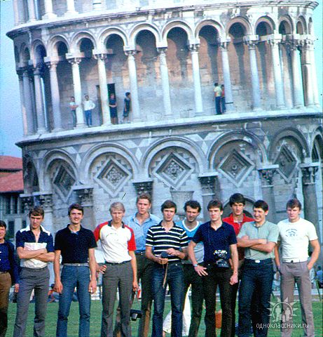 Молодежный чемпионат мира в Италии (1985 год). Сборная команда СССР на фоне Пизанской башни (Игорь Абдрахманов – второй справа). «Тогда итальянцы только начинали свое восхождение, на Апеннинах был самый настоящий волейбольный бум. Только-только зажигались звезды мировой величины – Лука Кантагали, Зорзи, Паоло Тофоли. Поэтому вдвойне было приятно обыграть ту команду, да еще и на родной для них площадке», - рассказал Игорь Абдрахманов.