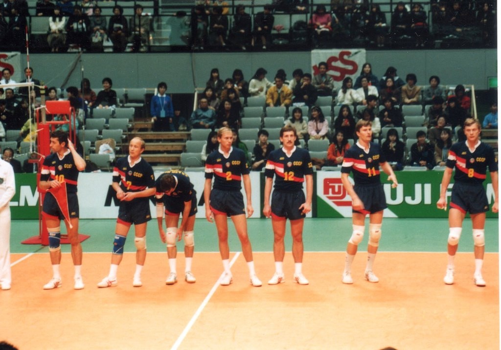 В 1989 году сборная команда СССР заняла третье место на Кубке Мира в Японии. Матч СССР – Бразилия (3:1). Игорь Абдрахманов – № 12.