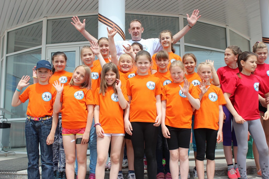 Игорь Абдрахманов со своими воспитанницами в ВЦ «Сахалин»