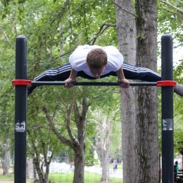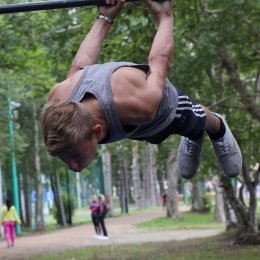 Показательные выступления турникменов на праздновании Дня физкультурника