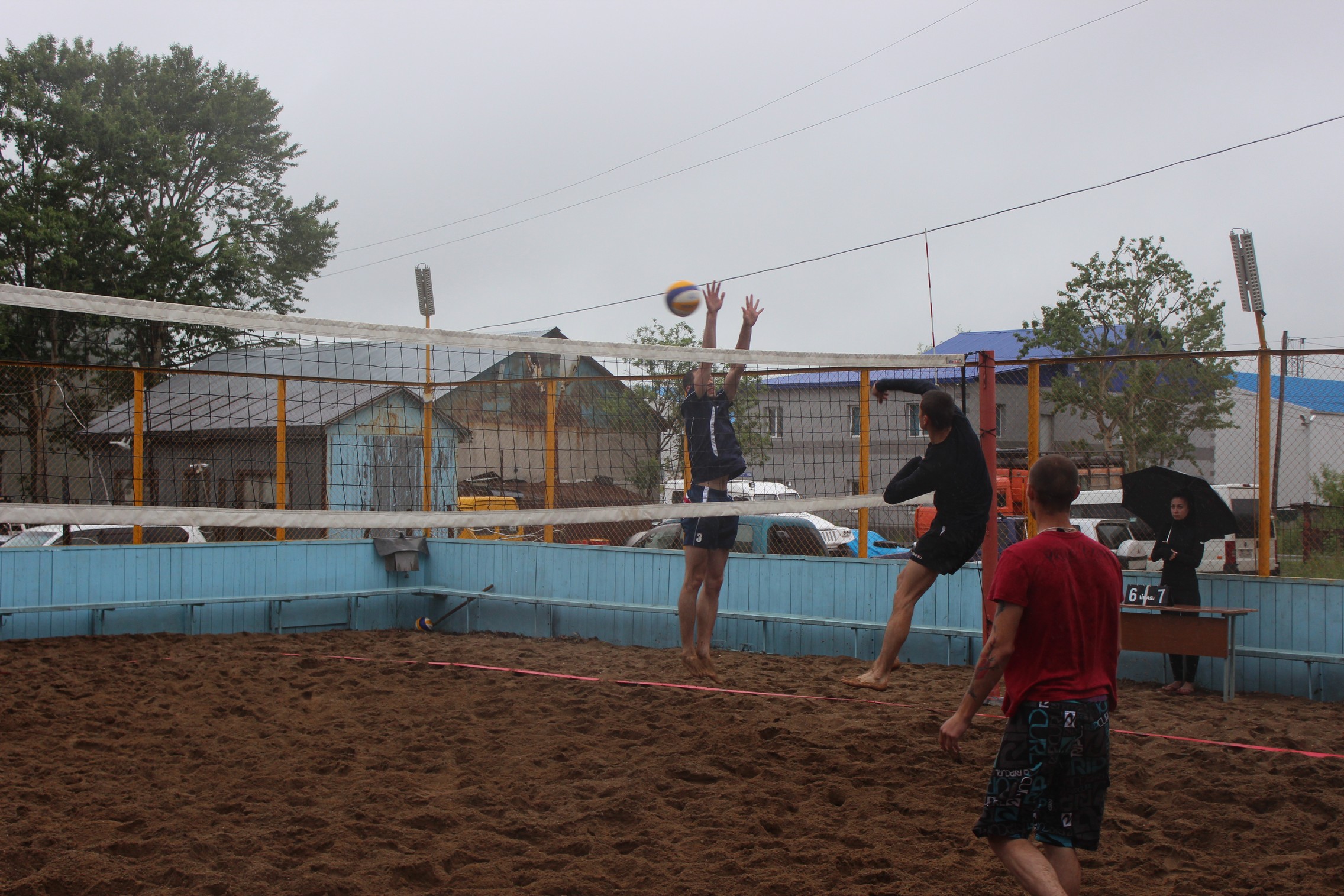 И, действительно, дождь стал одним из главных соперников волейболистов. Песок быстро намок (как, к слову, и мяч) и на первый план вышли не технические изыски, а бойцовский характер. Под проливным дождем побеждают, действительно, сильнейшие.