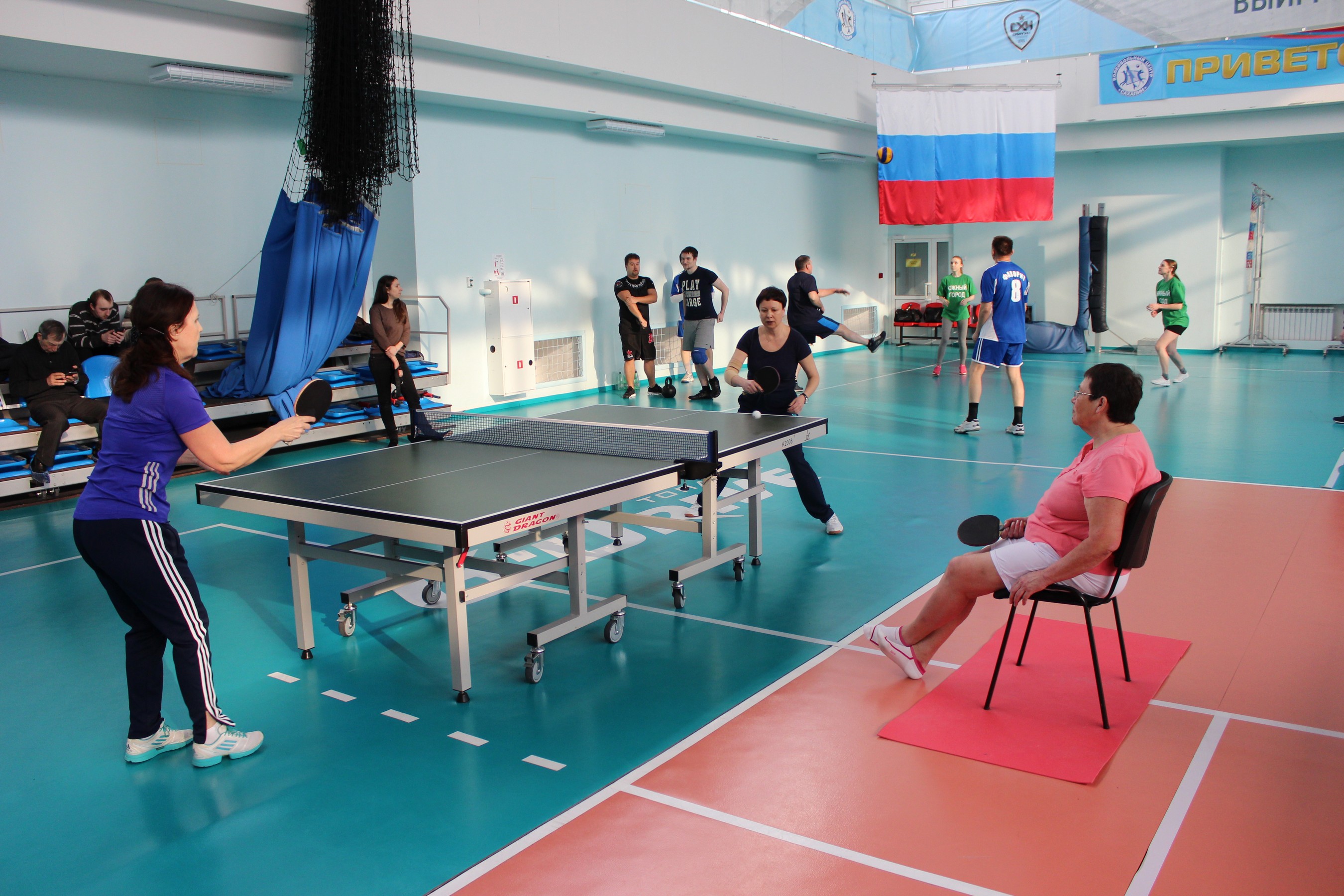 Затем был оглашен регламент дня. Участникам предстоит выявить сильнейших в дартсе и настольном теннисе, поднятии гири и волейболе, а также в веселой эстафете.