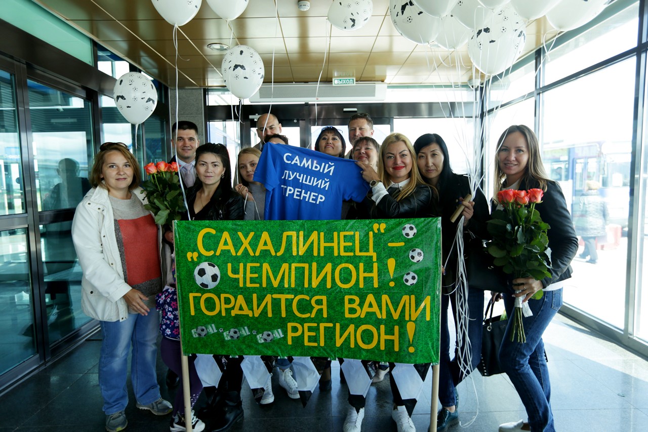 Юные победители не ожидали такого теплого приема в аэропорту. Между тем, их приехали встречать не только родители, но и воспитанники, тренеры и руководящий состав ОГАУ «ФК «Сахалин» во главе с директором Евгением Васильевичем Крючковым.