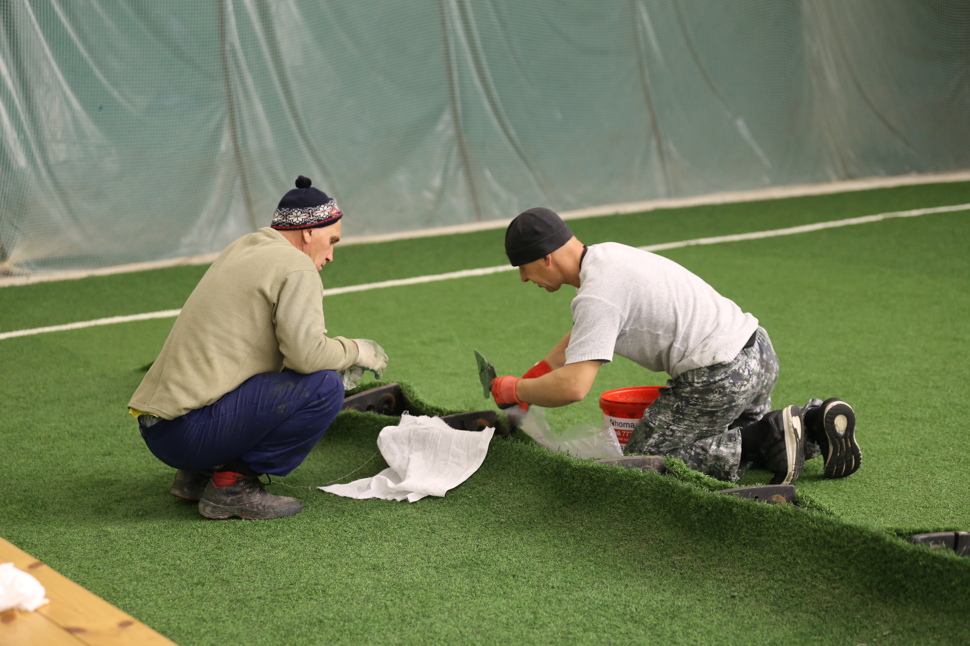 Специалисты компании, используя профессиональное оборудование и современные материалы, провели качественную работу по укреплению искусственного газона спортивного комплекса «Олимпия-Парк», позволяющую увеличить срок эксплуатации футбольных полей.