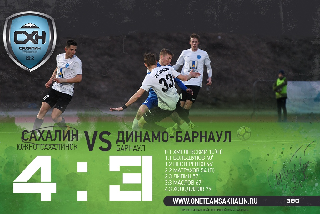 18 апреля «Сахалин» в рамках 16 тура первенства России по футболу среди клубов ПФЛ (зона «Восток») нанес поражение «Динамо-Барнаул» (4:3).