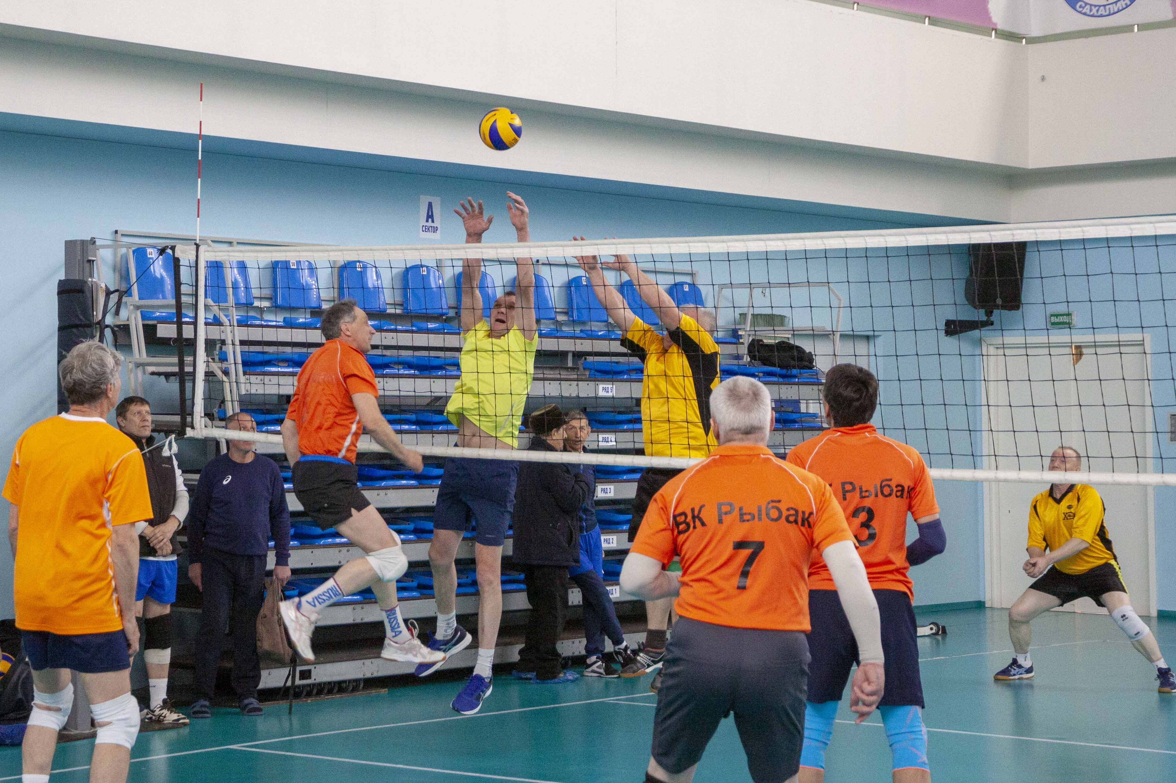 В Южно-Сахалинске прошел волейбольный турнир. Состязания ветеранов старше 50 лет были посвящены Дню защитника Отечества.