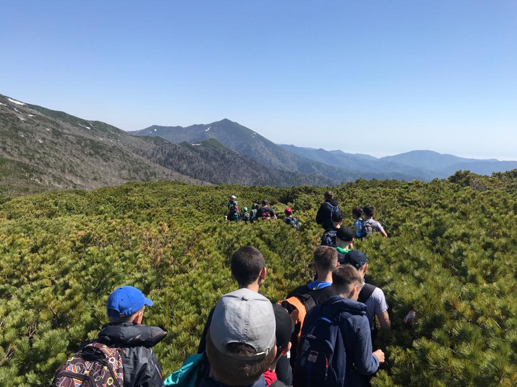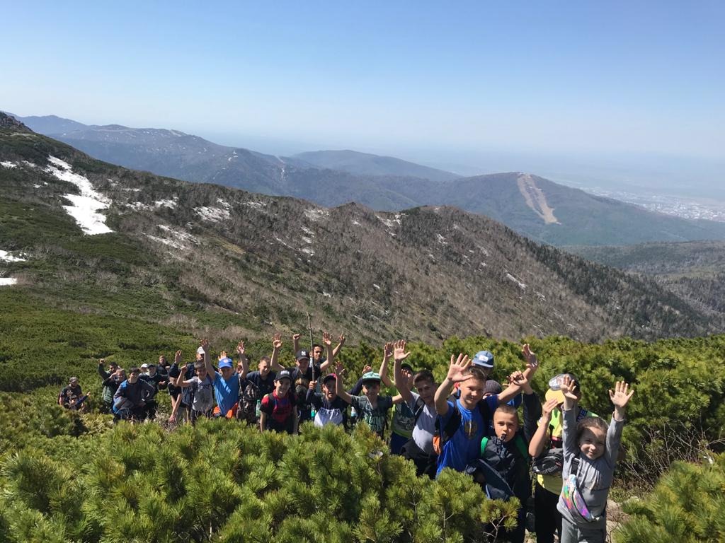 Пик Чехова украшает каменное сооружение. Это – остатки японской молельни. Панорама, открывающаяся с вершины, невольно вызывает преклонение перед красотой и величием сахалинской природы. Сегодня эту красоту увидели воспитанники ГБУ «СШ самбо и дзюдо».