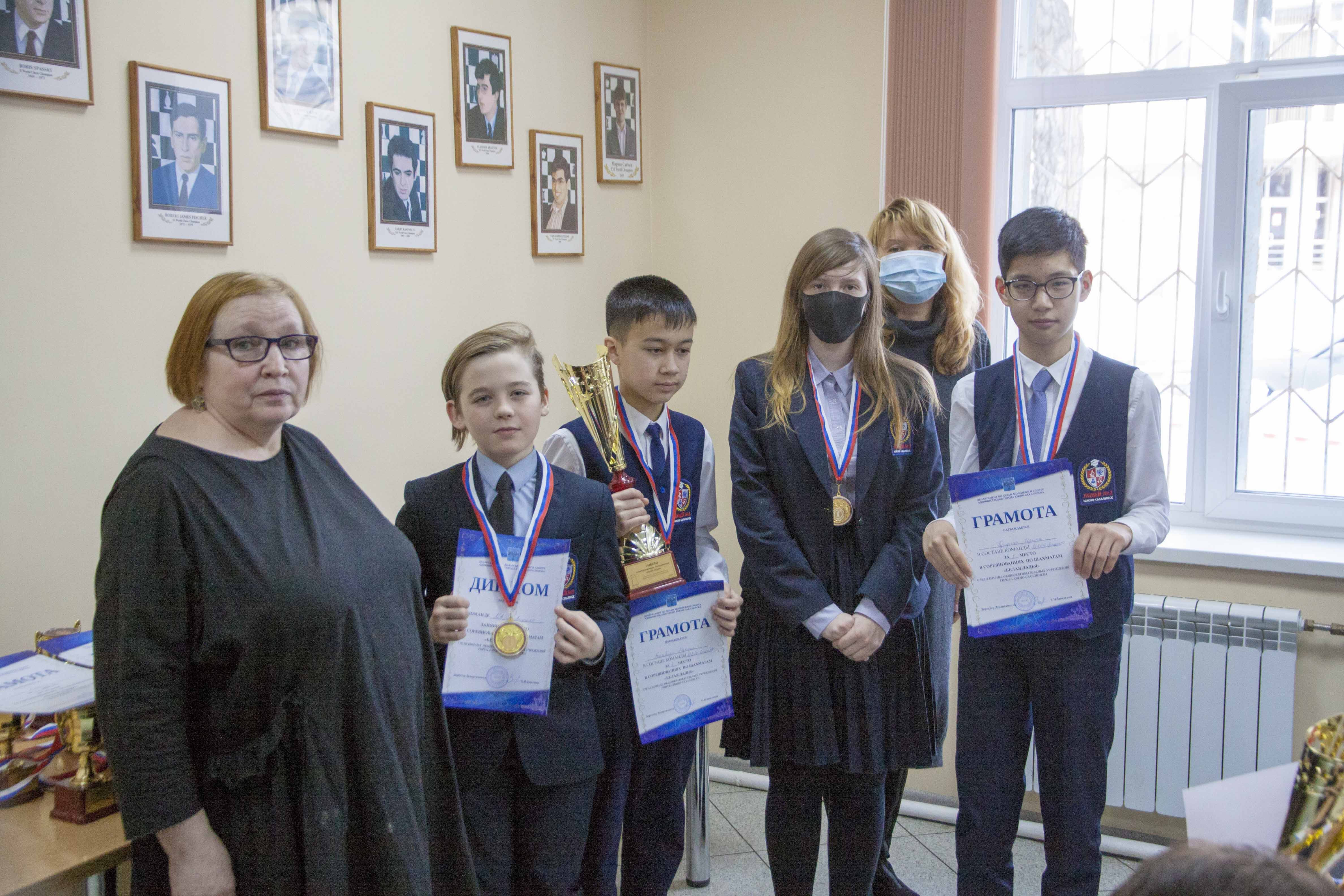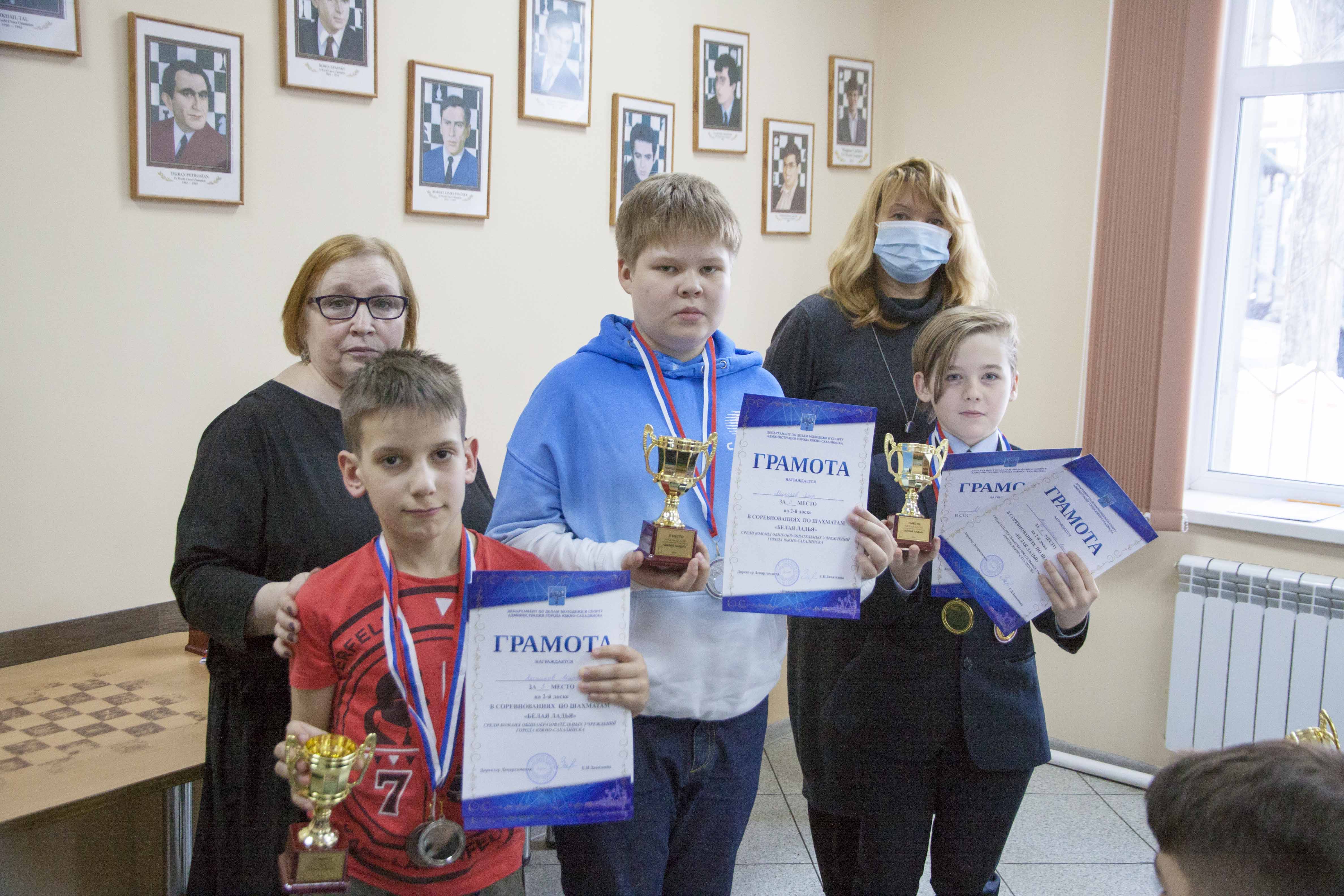 На полтора очка от них отстала команда гимназии № 2 (Лев Бобровский, Матвей Лесников, Семен Син, Алиса Маринина), занявшая второе место.