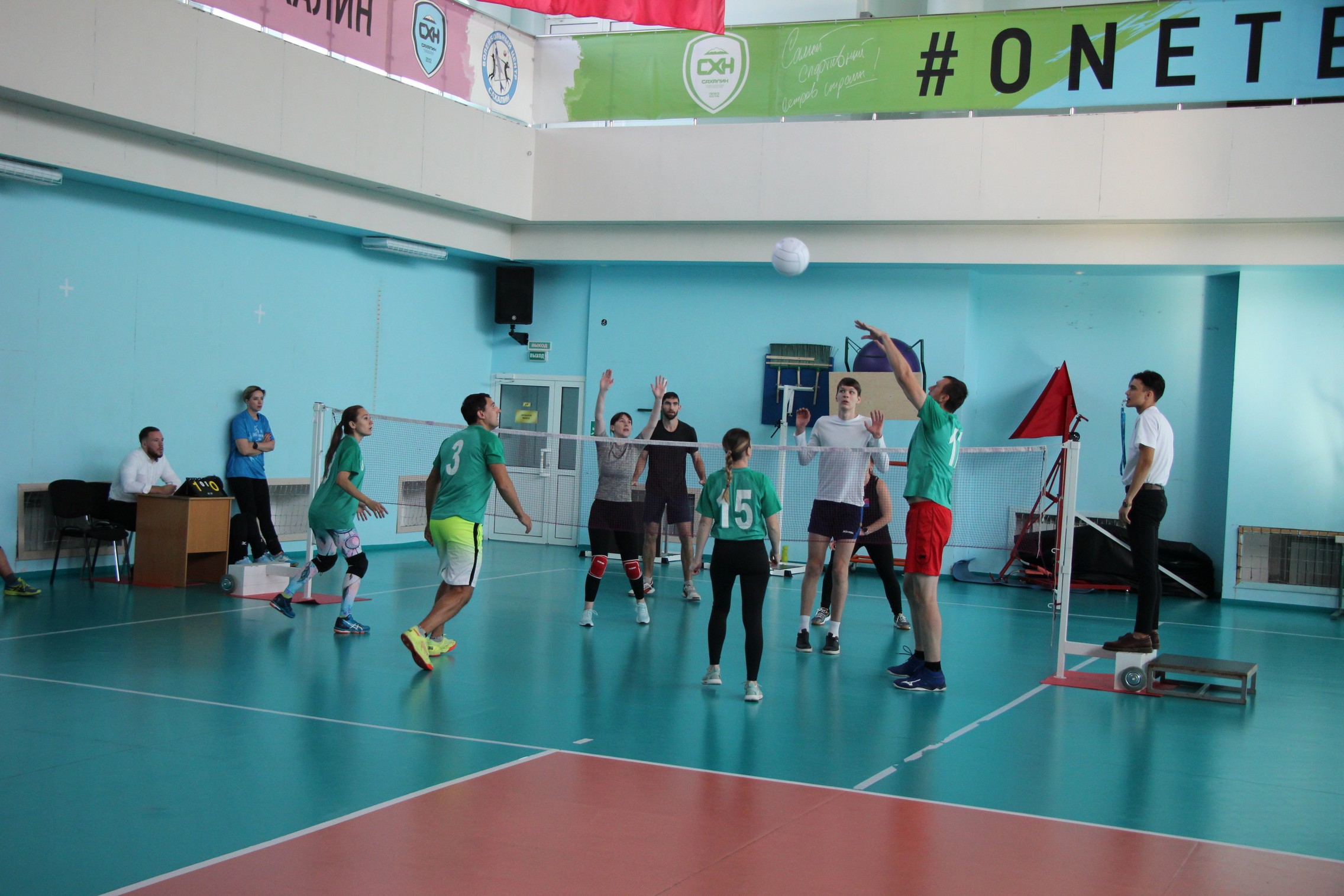 Участников приветствовал профессор кафедры физкультуры и спорта СахГУ, член областной федерации волейбола Петр Пасюков. Он пожелал волейболистам яркой игры и позитивных эмоций.
