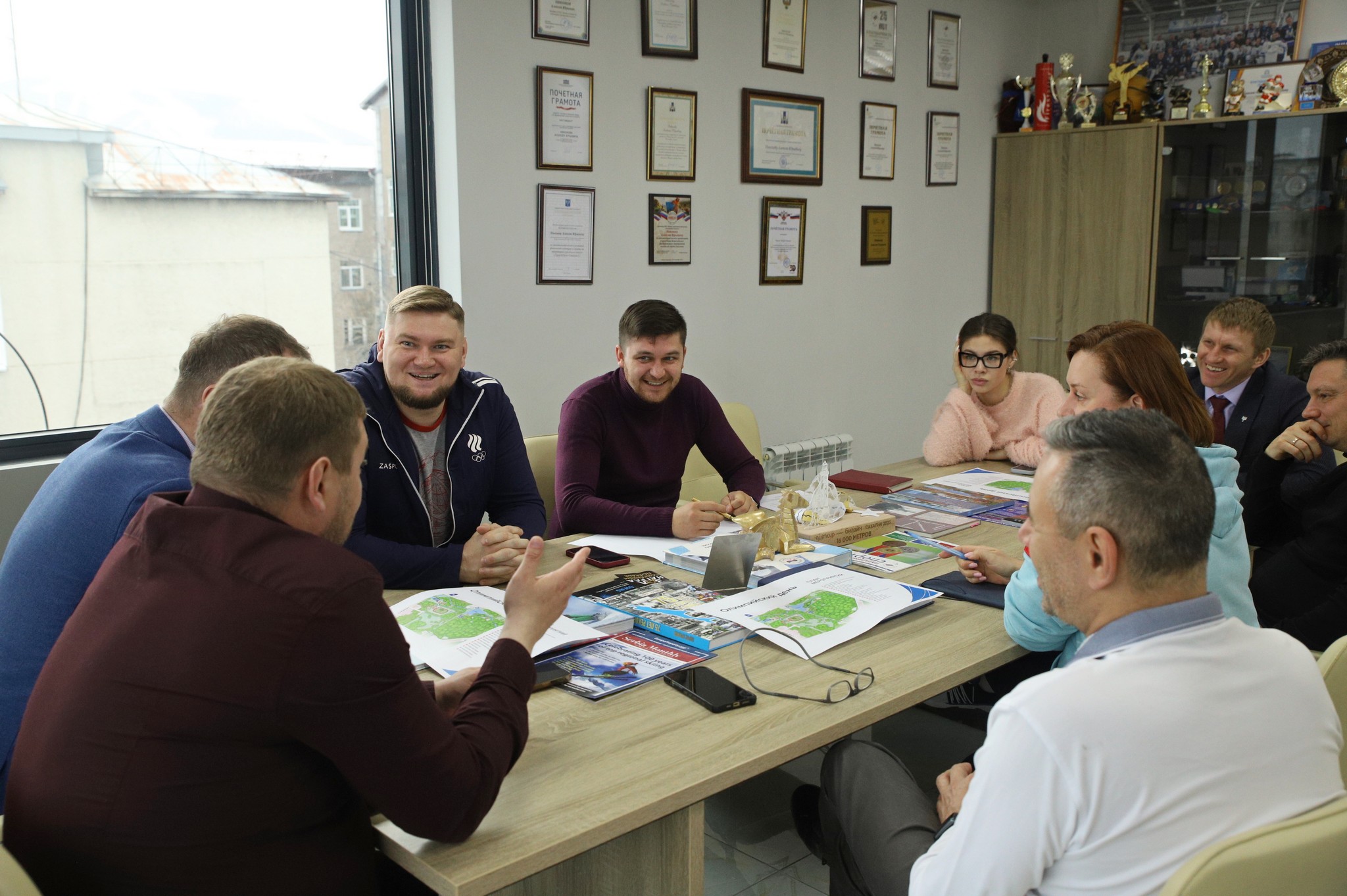 В первой половине дня специалисты ОКР провели совещание с заместителем министра спорта Сахалинской области Станиславом Тюриным, директором сахалинского центра спортивной подготовки Алексеем Никоновым, председателем Олимпийского комитета островного региона Владиславом Глуховым, директором департамента по физической культуре и спорту администрации города Южно-Сахалинск Алексеем Боженко и начальником отдела физкультурных и спортивных мероприятий регионального ЦСП Никитой Гриником.