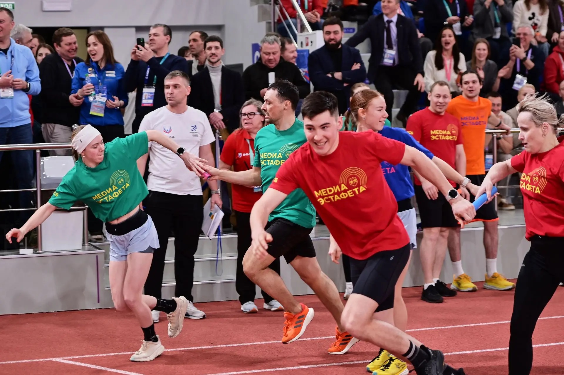 Состав шести команд по четыре человека в каждой довольно впечатляющий. На старт эстафеты вышли олимпийские чемпионы по лыжным гонкам Александр Большунов, Вероника Степанова и Денис Спицов, победитель и призер этапов Кубка мира по горнолыжному спорту, участник Олимпийских игр Александр Хорошилов, двукратный чемпион России в беге на 200 метров и победитель Игр стран БРИКС Андрей Лукин и другие известные спортсмены, а также журналисты, блогеры и видеооператоры, без которых сложно представить масштабы славы именитых спортсменов.