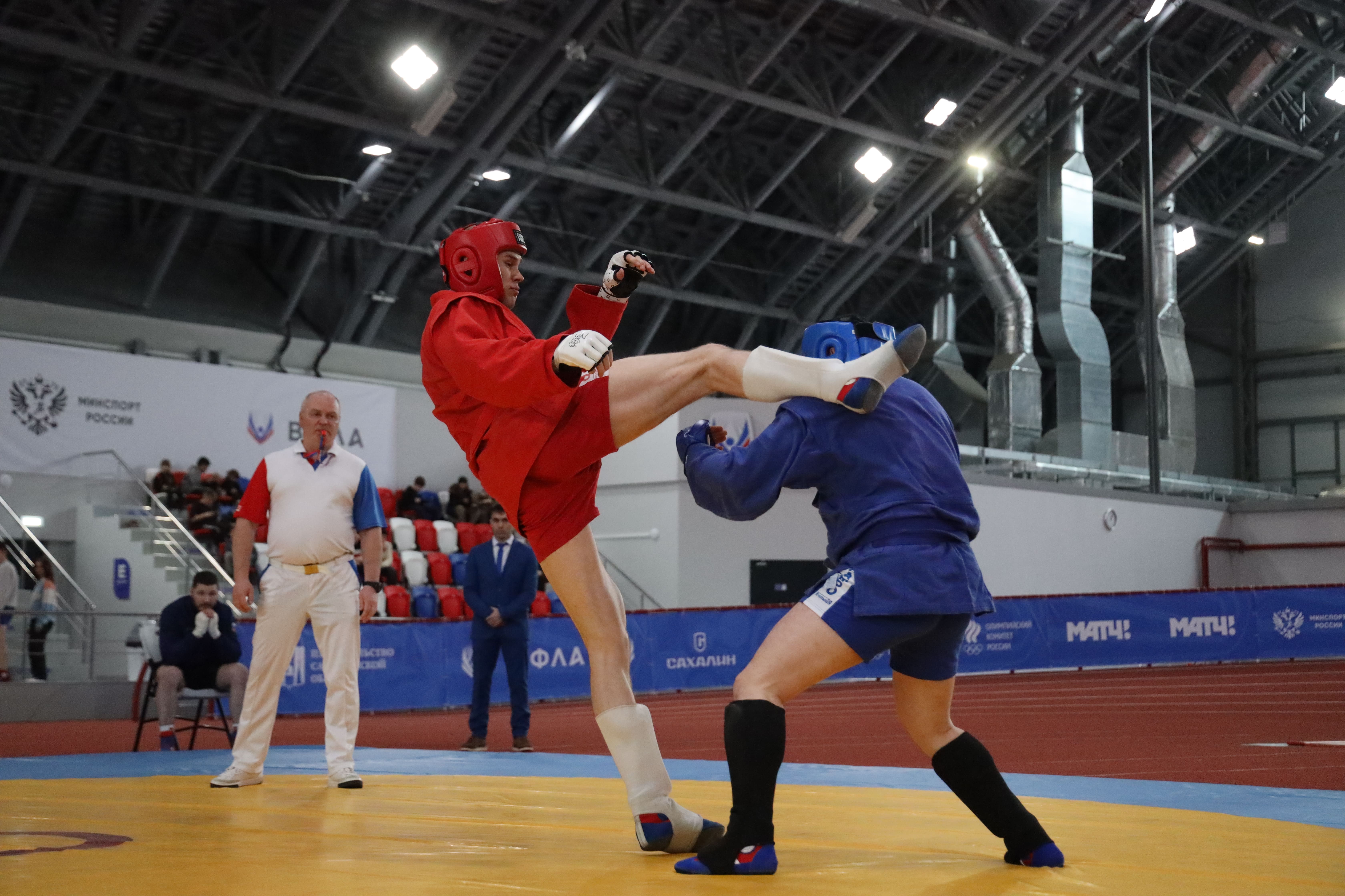 Открытый областной турнир по самбо и боевому самбо на Кубок Управления Росгвардии по Сахалинской области, приуроченный к 10-летию образования войск национальной гвардии Российской Федерации, состоялся в легкоатлетическом манеже Южно-Сахалинска.