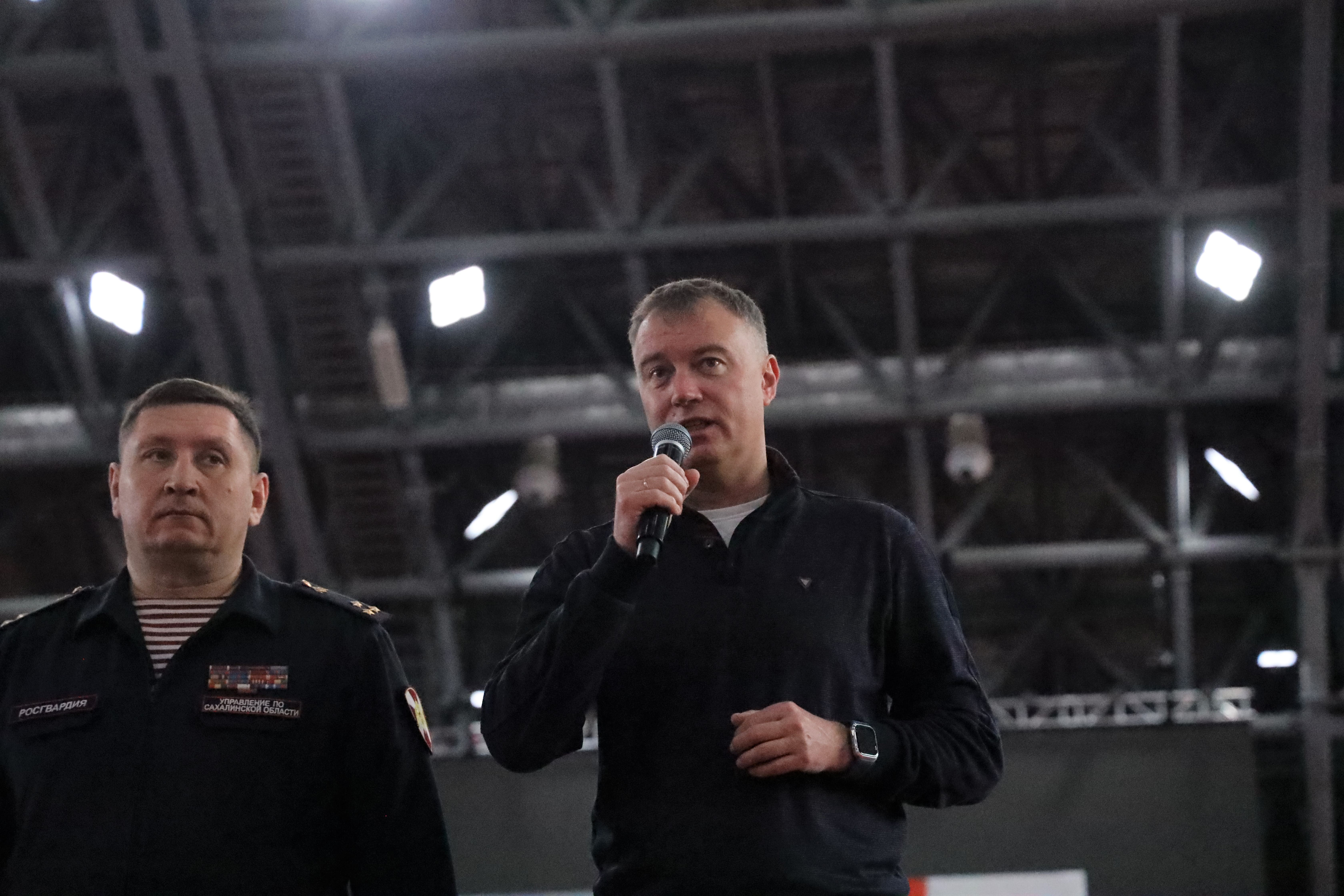 - Очень приятно видеть столько зрителей на трибунах. Хочу пожелать спортсменам удачи и достойно проявить себя на ковре. Отдельные слова благодарности - Росгвардии за отличную организацию турнира и за ту работу, которую вы делаете. Уверен, сегодня мы увидим яркие, красивые схватки, и победит, конечно же, сильнейший, - обратился с напутственным словом к спортсменам заместитель министра спорта Сахалинской области Станислав Тюрин.